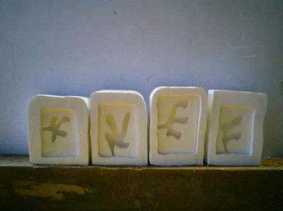 Plaster, Water color スチロール雌型原型を石膏鋳型 2006