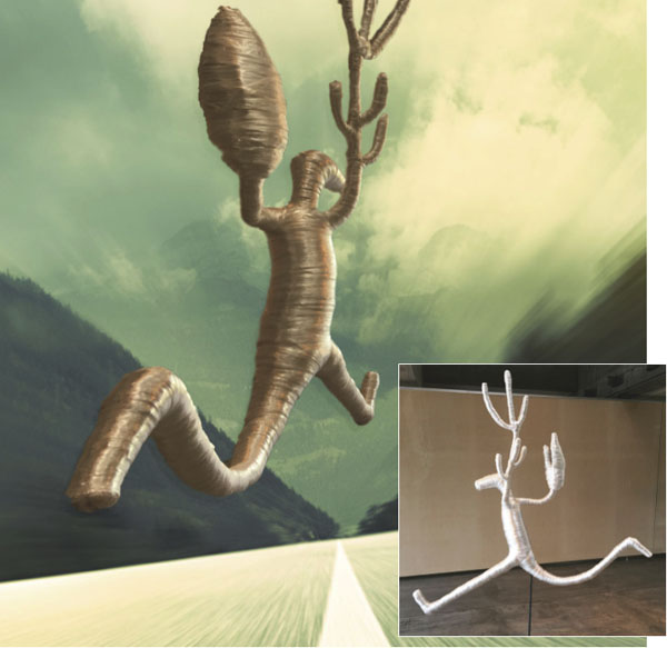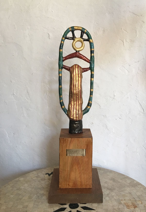 天照大神を心象化したフォルム / Polyester, Iron core, Wood 460x140x140(mm)