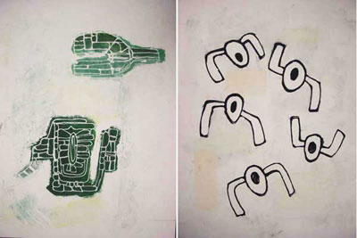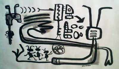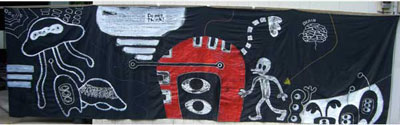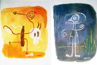 ドローイング 2006 DRAWING 繰り返し出てくるモチーフの一つに頭蓋骨がある。ノートに向かい無意識のイメージを描き出していると意味不明なかたちが次々とあらわれるが、その合間に息継ぎするかのように頭蓋骨が登場してくる。 私にとっては ”Hi” と軽く挨拶し合うような存在だ。 時たまノートの1ページだけでは物足りなくなって別の紙に大きく描いてみたくなったりする。 描いていて何となく嬉しいのだ。 わからない形、説明できない形が多い中、頭蓋骨は頭蓋骨だ。 現実的な世界とイマジネーションの世界の間に存在していると思っている。 ![]() ![]() ![]() escape 金属板を釘付け ![]() ![]() ![]() ![]() ![]() ![]() ![]() 送り物に使う段ボールにペイント ![]() 手作りのブリキバッチ100個 ![]() ![]() スペース・マンダラ ![]() スペース・マンダラ ![]() ![]() 板に墨汁でペイント ![]() 溶接面にペイント ![]() 岐阜のフラッグコンペ、泥を塗る。 ![]() 8mの布にペイント ![]() 展覧会のためのイメージスケッチ |
