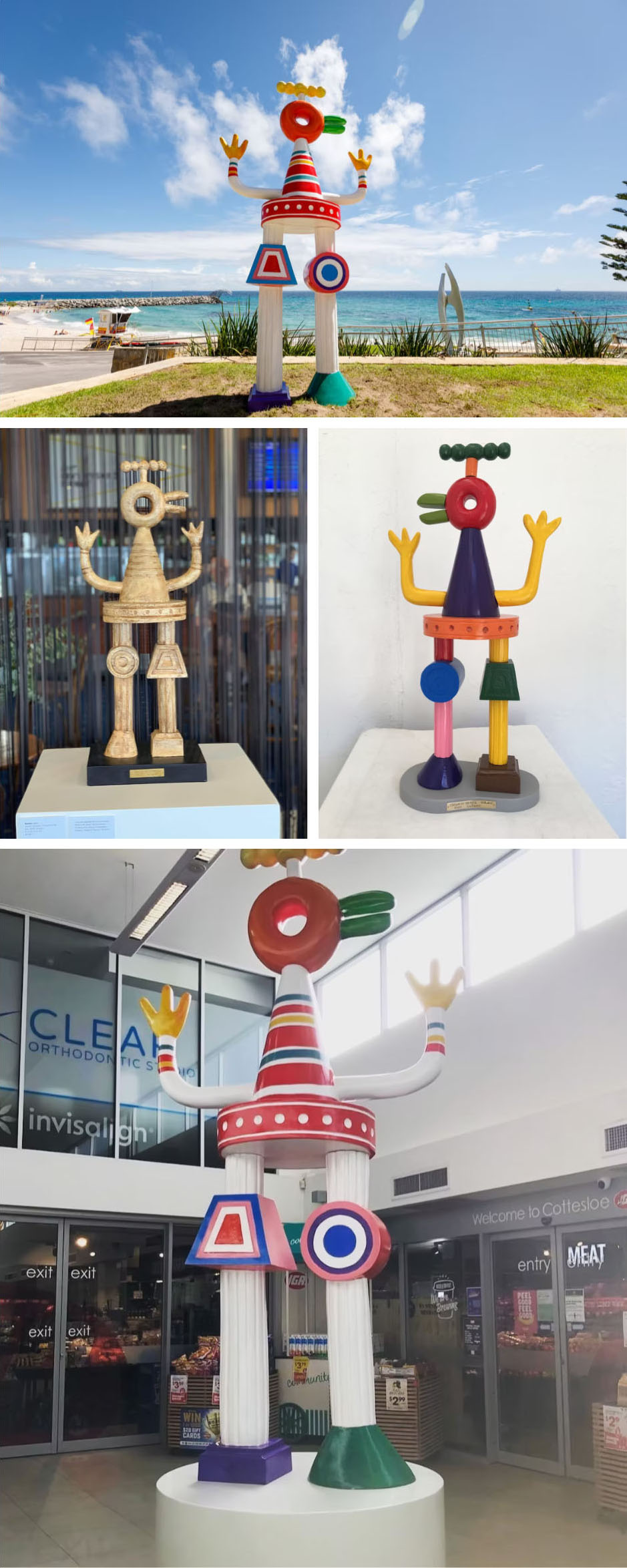 "Dream of Cyprus" was exhibited at Sculpture by the sea in Cottesloe, Australia, in 2021, where it received the Kid's Choice Award. Installed at the entrance of a nearby shopping mall, the colorful figure welcomed visitors with its playful yet symbolic design.