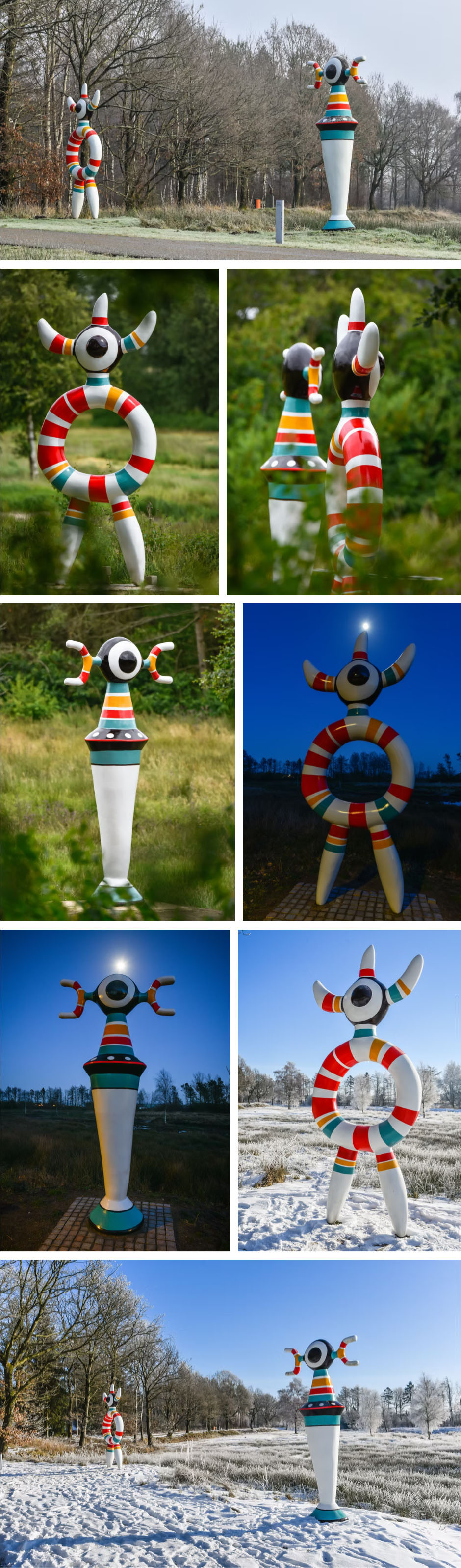 As guardians of imagination, they invite visitors into a playful encounter, where humor and mystery coexist harmony with the environment.