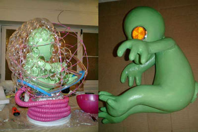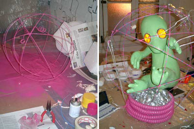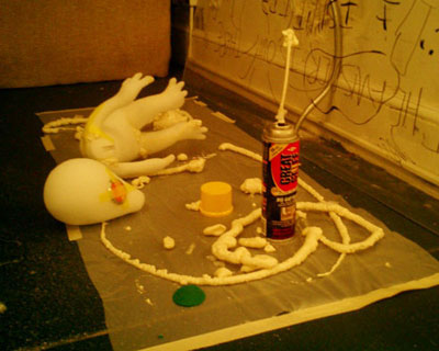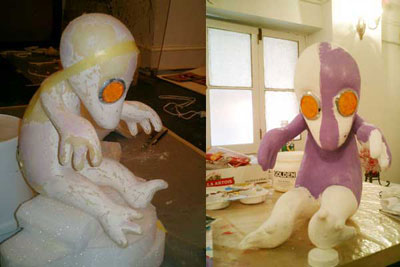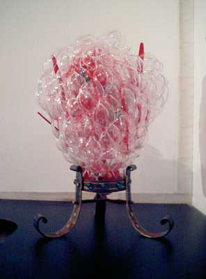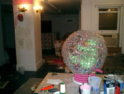 ALIEN BABY / A.I.R 2006 ガーシュインホテル / Artist in Residence N.Y.マンハッタンのガーシュインホテルのレジデンスプログラムに行ってきました。下の写真は不思議な角のような照明が突き出た真っ赤なホテルの正面。2006年に9.6から10.11までの35日間ニューヨークのガーシュインホテルに約1ヶ月間滞在。何度もニューヨークには行っているけれど滞在しながら制作をするのは初めてのことでした。 どうなることかと不安もありましたが行ってしまえば迷うスキがないほど私は夢中になって日々を過ごしていました。 ![]() 2006年に9.6から10.11までの35日間ニューヨークのガーシュインホテルに約1ヶ月間滞在。何度もニューヨークには行っているけれど滞在しながら制作をするのは初めてのことでした。 どうなることかと不安もありましたが行ってしまえば迷うスキがないほど私は夢中になって日々を過ごしていました。 手持ちの道具はほとんど無しに何を作るか。材料費は出してくれる。工 具や画材は地下鉄やバス、徒歩でたいていの物は間に合う。息抜きは美術館などいくらでもある。都市のパワーを体全体に受けて、感性が本当にびりびりと痺れ るように刺激された。そんな強烈な感覚は初めてだった。ナイスな作業部屋を与えられ、気の向く時間に製作すればいい。街を歩いてて透明のプラスチックスプーンがやけに気になりまとめ買いをした。そして作った物のうちの一つは、殻に包まれたエイリアンの胎児。プラスチックに光が当たるとキラキラきれいだ。 内面的には体験したことがないほどエキサイトしていたようです。すべてがフレッシュに感じました。 アーチスト イン レジデンス (A.I.R.)というプログラムは欧米ではポピュラーなもので、最近では日本でも何カ所かで行われているようですが、そのスタイルはA.I.R.によって様々のようです。 だからほかの作家がどのような感想を持っているのかは知りませんが、少なくとも私にとって今回のA.I.R.はぴったりのものだったと思います。 マンハッタンという大好きな都会のほぼど真ん中でホテルに滞在しながら製作できるだなんて、一大事件だったわけです。 少々のトラブルなども困るのだけれど面白いと感じたりして、さほど落ち込むこともなく、そこでは意外とタフな自分に驚いたりもしました。 作品はニューヨークについてから考えました。その地にいた自分だからこそできた表現だったと思っています。 このホテルにはアートがいっぱい飾られていた。 これも誰かの作品。ポップアートがメイン。 フロントには日系のアヤさんがいてくれて大助かり。 ![]() アーティスト・イン・レジデンス初日。 個室の部屋から毎日眺めていた外の景色。 用意してくれた私のスタジオ。けっこう広い。 ![]() 使っていない会議室が私のスタジオ。 ![]() これでも整理整頓してる。 ![]() 近くのホームセンターで材料仕入れ。これ何だろう?? ![]() 制作途中、右が設計図? ![]() とにかくスプーンが気になっていた。 ![]() 製作中のエイリアンベイビー。 ![]() 色を変えたらどうだろう。 ![]() 卵の中に入ってゆく。 ![]() ![]() ![]() ![]() 短期間で頑張りました。 ![]() 生け贄の心臓をイメージ。プラスチックスプーンを使用。 ![]() 暗闇にエイリアンベイビーの卵が光る。 ![]() ![]() スタジオでの制作の1コマ。 こんな広告見たのは初めて。 セント・ヨハネ大聖堂にあるキース・ヘリングの祭壇。 道路にマーキング。こんなのでわかるのかな? アイロンだ! ![]() 映画(I am legend)の撮影をしていた。 ![]() 消防車もカラフル。さすがアメリカ。 全面ガラスのアップルストア。地下が売り場になっている。 友人に紹介してもらった造形作家マイクのアパートメント。 ニュージャージーにあるマイクのスタジオ。いい仕事してます。 ![]() 最後にはロビーでSHOWが実現! ![]() 作品名"LOVERS" ![]() 作品名"MASK" 作品名"HEART" 作品名"LOVELY BABY" |