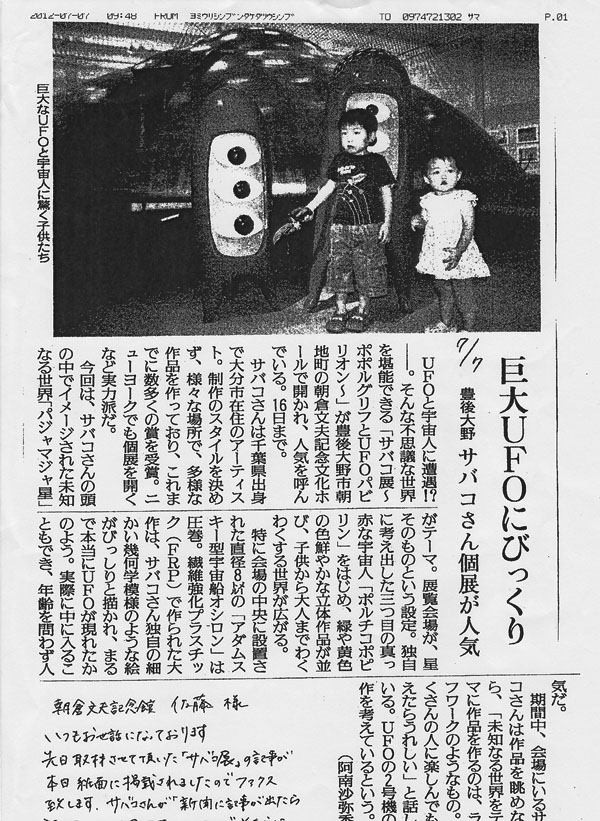 ポポルグリフとUFOパビリオン サバコ個展 / 6.30 - 7.16 2012 / 朝倉文夫記念文化ホール 主催:豊後大野市(朝倉文夫記念館) 後援:大分合同新聞社・OBS大分放送 TOSテレビ大分・OAB大分朝日放送・エフエム大分