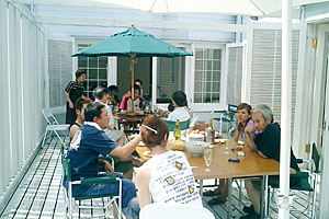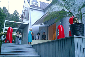 ここ十里木は富士の裾野南に位置し、標高約900mの高原です。 東京から一時間ほどでしのぎやすい夏を満喫できる避暑地です。 都会の喧噪をわずかばかり離れ、物事の追求などにはうってつけのこの地のためか、 各方面の文化人が美酒と肴を求めてこのスタジオに集い浮世離れした話に花を咲かせ る様を目の当たりにして、うらやましくもありまた住人たちもユニークであり何かし ら伝えたい欲求にかられこのページを作ることにしました。 この別荘地にあるレイ・ジューリギスタジオを個展のため訪れるようになってまだ2年目 ですので登場人物も一部紹介であり、それぞれの人物紹介について、多大な誤解による勝手な解釈、 失礼の段があるかもしれませんことを始めに申し上げてお許しいただきたいと思います。