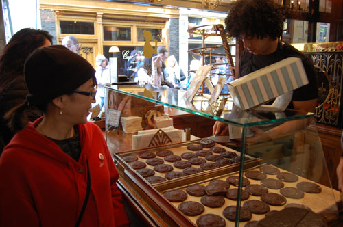 お友達へのお土産に有名なクッキー店に入る