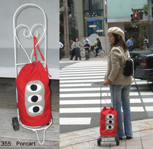 Serial No.355 PY : 2008 H:86cm x W:28cm x D:27cm Material : Fablic, String, Iron, Plastic tire, oil paint Type : Unique Nickname : Porcart |