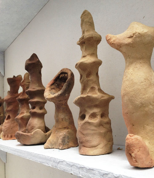 ラノングーラ地方の住居をたくさん作って展示 素材:素焼き陶土