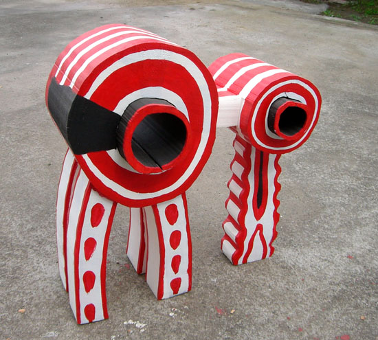 ポルチコポピリンの背中をくりぬいて座ることができる椅子型オブジェ。