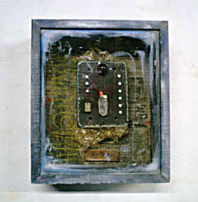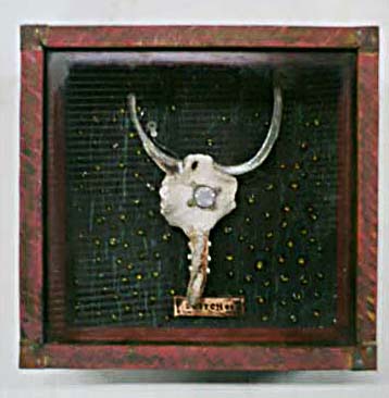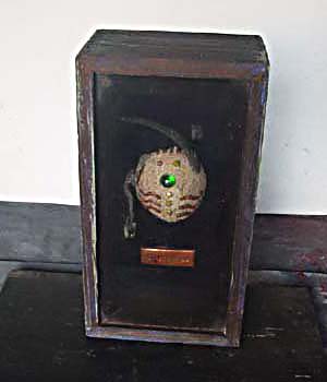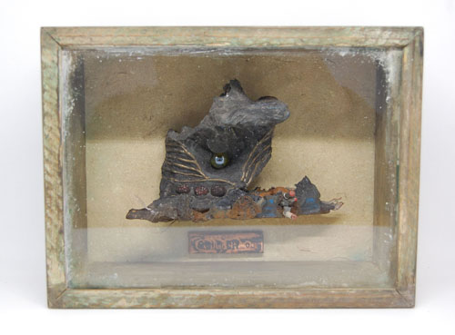 「箱の中には宇宙がある」標本箱や宝箱のようなどこか秘密めいているものは覗き込みたくなるもの。オリジナルの木箱の中には不思議の国へと導くスイッチが入っています。機械部品や石、木などを使ったアッサンブラージュ、初期のジャンクアートのニュアンスを引き継いだ箱ものタイプ。