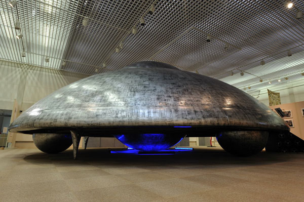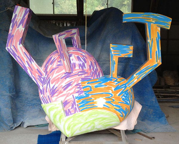 大分駅南口にて展示/素材:ポリエステル、鉄材、純金箔、照明機器、ウレタン塗料 Ship: FRP, height 3.3 x diameter 8.3(m)