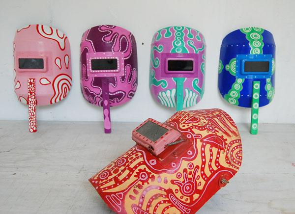 素材:既成の溶接面、アクリル絵具