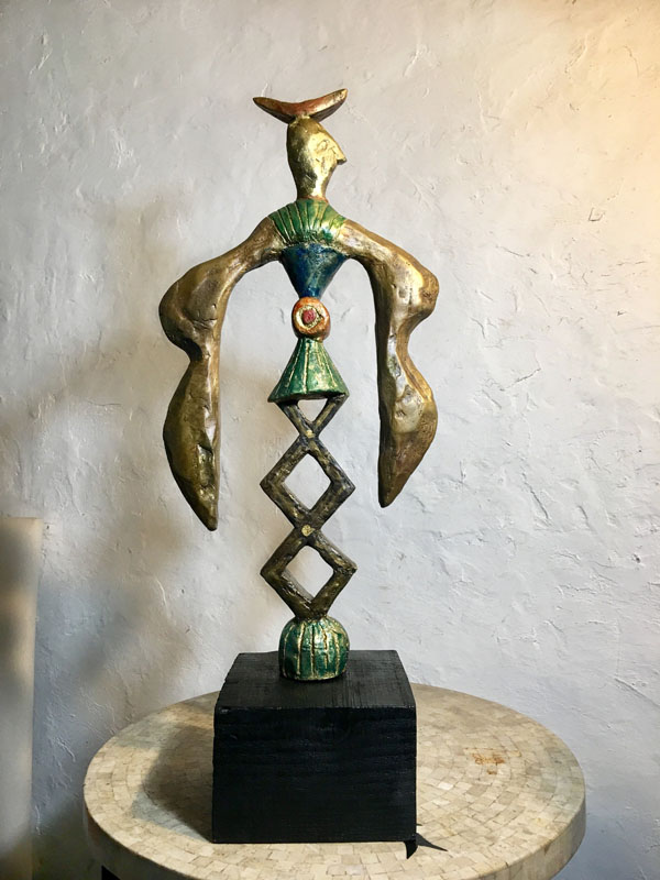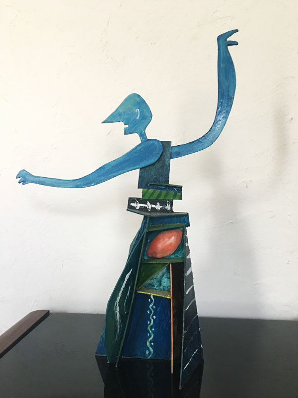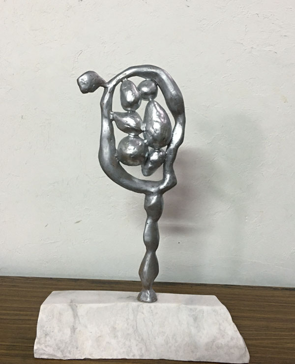 天照大神を心象化したフォルム / Polyester, Iron core, Wood 460x140x140(mm)