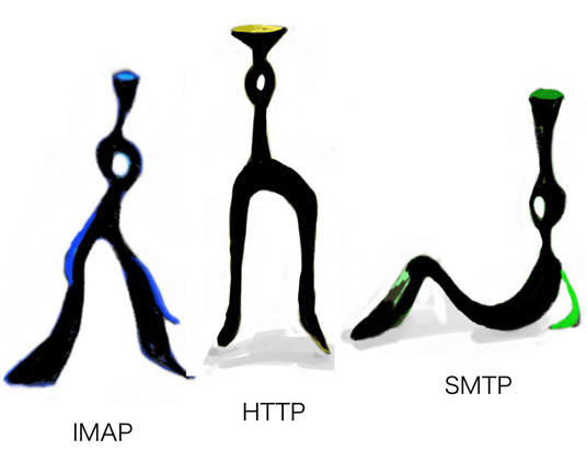 IMAP、HTTP、SMTPの3人のプロトコルが仕事している。