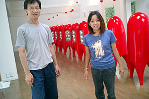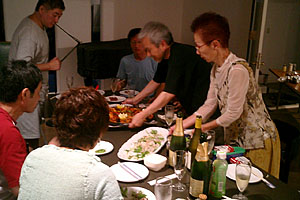 十里木の住人たち ”リキさん”こと 福島 力 写真家;日本広告写真家協会会員、元同理事長 (有)スタジオ・リキ主宰 あまたの大手広告代理店での経歴を持つ一級プロカメラマン。その風貌どうり、 NY仕込みの厳しく優しい目で被写体を追う。またスティルのみでなくフィルムや VIDEOなどビジュアル全般に関わり、そのデジタル化の草分け的人物でMacとの 併用により早くからアートの領域まで踏み込んでいる。その発表が早すぎたのか 当時の業界の中ではジャンルの線引き(写真か、はたまたアートか)にそうとうな物議をかもしたらしい。 お仕事の合間を縫って、週末は写真教室を開催。デジカメ一眼レフを使用し初級 からハイエンドまで対応する。教室での撮影後はその場でモニターを使っての講評 やレタッチテクまで指導してくれる夢のようなワークショップだ。 2005サバコ個展のポルチコ ![]() 静かでひっそりとした、十里木の八幡神社への苔むした参道で。朝露がいっぱい。(写真:福島 力) ![]() 人造物がほとんど無く木々がほんとに美しい。ポルと隠れんぼ。 (写真:福島 力) ![]() あちこち駆け回って遊び、露でびっしょりになるポル。(写真:福島 力) ![]() 最後に記念写真も撮ってくれました。ほんとにありがとうございました。(写真:福島 力) ![]() ファインダーを覗く福島さん。何やら感心しまくっているサバコ。 ![]() 三脚から手持ちに変える福島さん。声を掛けられないくらいの張り詰めた空気。 ![]() 撮影終了ということで、担ぐサバコ。胴回りが太めなのでキツ〜。 ”ヒゲゾー”こと 松原 卓二 プログラマー; 聞くところによるとソフト開発期間2ヶ月、一本のギャラで別荘を買い、 東京から移住したらしいから、その凄腕が伺える。驚くことにマックの ソフトがメインというから、マックユーザーにとってはメシア的存在だ。 噂によると部屋ごとにモニターがうじゃうじゃあるらしいです。そういう お仕事だけにマシンも5年も経つと使えなくなるというか対応できなくなる らしいので、ちょうだいと言ったらほんとにくれたんですG4!。 今我が家ではメインマシンに鎮座する。写真の腕も玄人跣で、 谷岡シェフの料理 を逃さず毎回お預けを喰らわせてカメラに押さえている。また家の庭によってくる リスを長年撮りためて、レイ・ジューリギスタジオにて写真展を開いたばかりだった。 ”クギさん”こと 釘宮 正隆 発明家;株式会社テクノプロト代表 おもちゃから実用品まで数々の発明特許を持っているらしい個性的な人物。 いつも白衣ではなくかわいいエプロンをしているが。特にスターリングエンジン と称するエンジンは熱と空気だけで回転する不思議な動力源。何やらエネルギー革命に一石を投じるかも。 クギさんの研究室はとても広くてオール木製の手作りボートが鎮座する。さらにアブナイもの が作れそうな秘密の研究室がなんと地下に。娘さんが現在エール大学で美術を学んでいます。 彼女とはニューヨークでお会いし、大学までいって彼女のスタジオを見せていただきました。 さすがにアメリカ、うらやましい環境で大作を描いてました。 ”ミツイさん”こと 三井 康亘 ロボットアーティスト;MITUI ART MAGIC代表 先日お邪魔した際思ったのですがロボットメカや絵画、オブジェとまるでダ・ヴィンチの アトリエ(見たことはないんですが)のようでした。それにあのタミヤと深く関わってい るらしい。アートとクラフトが交錯している不思議な世界です。私にとってミツイさんと は天使を描かせると世界一美しい天使を描く画家ではないかという気がしてならない。 そもそも天使についても非常に詳しく、数々の出版物を出し、近年は九天使をモチーフに したシルバージュエリーを手がけているようです。またジューリギスタジオで見かけていた 天使のオブジェが何とも素敵で今回ポルチコと作品交換ということでいただきました。 人類がAI(人工知能)を完成した暁には絶対この人に(ロボットを)デザインしてもらいたいな。 現在ギャラリー然とした素敵なお住まいで日々、天使(奥様)と暮らしている。 ”ミノルさん”こと 冨樫 実 グラフィックデザイナー、ディレクター; かつて某大手広告代理店に勤務し、ディレクターをも食うデザイナーとして辣腕ぶりを振りかざし 数々のエピソードをつくった強烈なキャラクターの人物。昨年は音楽家の 山内 桂も我々と同行し美酒談議の際は、 山内の音楽について多いに盛り上がりワンワンとうるさいので、我々大分組の間では 密かに”ミノル犬”と呼ばれているのだ。 冗談はさておき、デザイナーとしてのワークは広告年鑑に掲載され数々の賞をも受賞している。 現在も多くの仕事をここ別荘地で優雅にこなしている。 お仕事部屋で見せていただいたのだが近年内密裏に進行しているシリーズ絵画制作は 今しばらくで完成を見そうだ。それら静謐な中に強烈なメッセージを打ちつけ、 見る者を引き込んでいく完成度は、唯美主義ともいうべき逸品である。 も