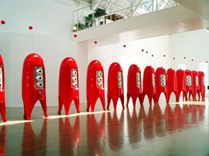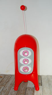 Serial No.237 PY : 2008 H:90cm x D:35cm Material : GFRP,Urethan Paint,Iron,PC,3 Liquid crystal display Type : Unique Nickname : Pino |